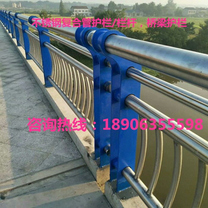不銹鋼復(fù)合管欄桿,它不僅具有不銹鋼管的豪華美觀和現(xiàn)代氣息,又具有普通碳鋼管的堅韌性。是價昂不銹鋼管的替代品,它與鍍鋅噴塑鋼板立柱配合,做成城市、道橋等的安全欄桿。不僅牢固、大方,且可造型各異,是城市景觀護(hù)欄的首選。